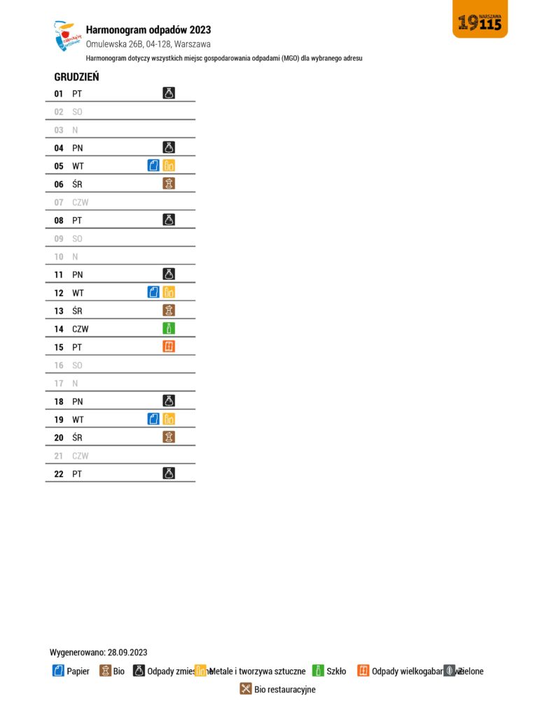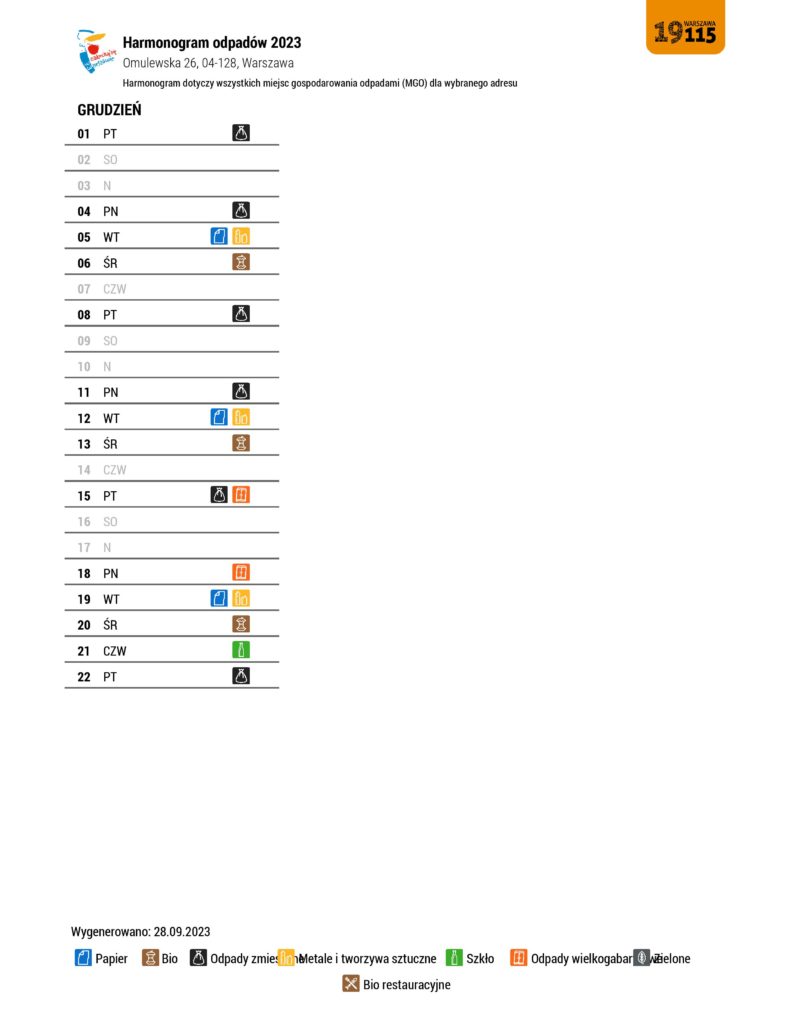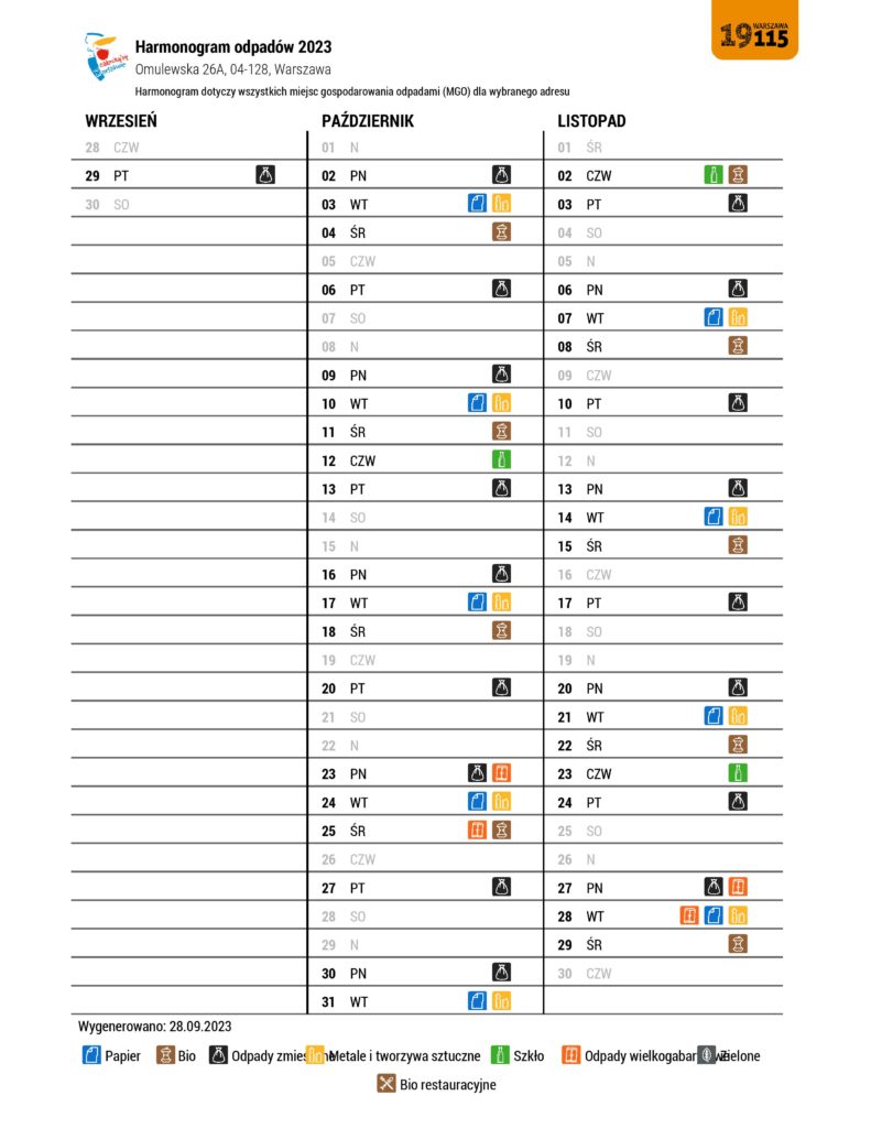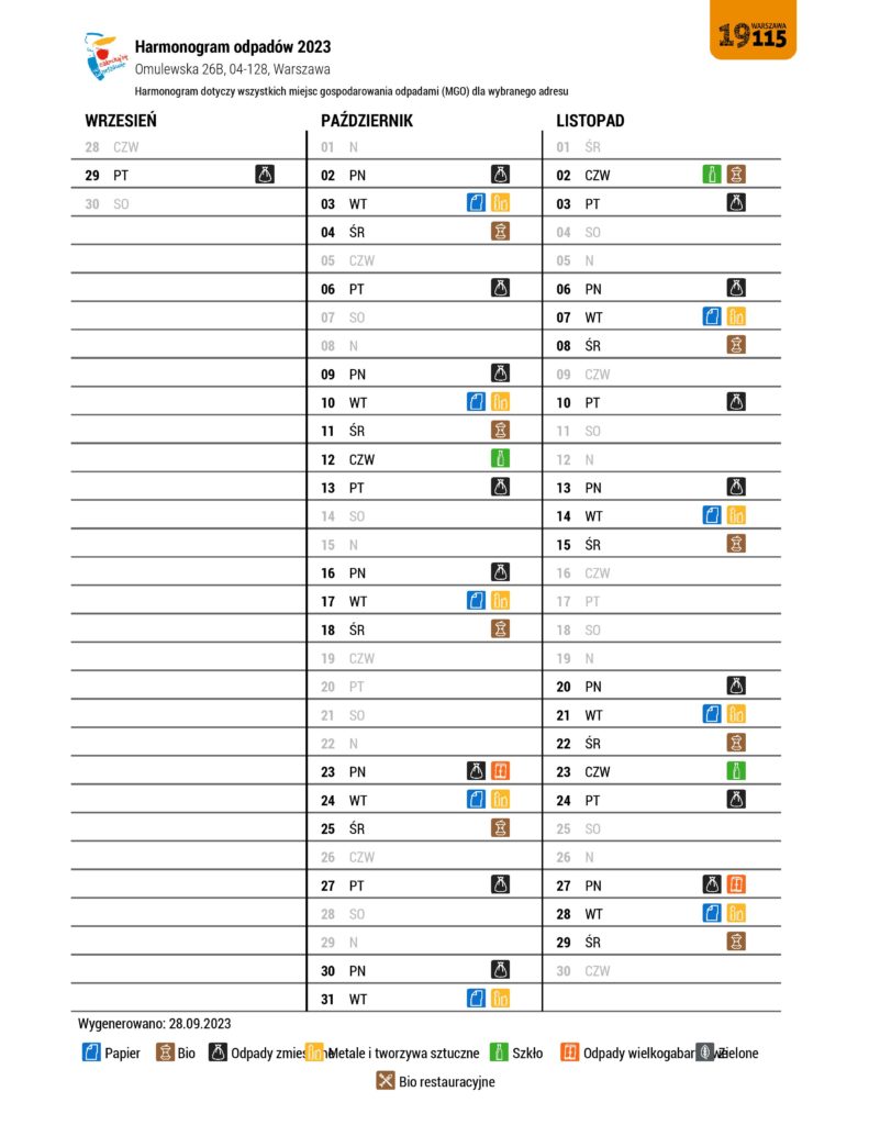 Poniżej znajdziecie Państwo harmonogram wywozu odpadów.